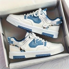 Men's Trendy Colour Block Street Style Skate Shoes, Comfy Non Slip Lace Up Casual Platform Sneakers For Men's Outdoor Activities